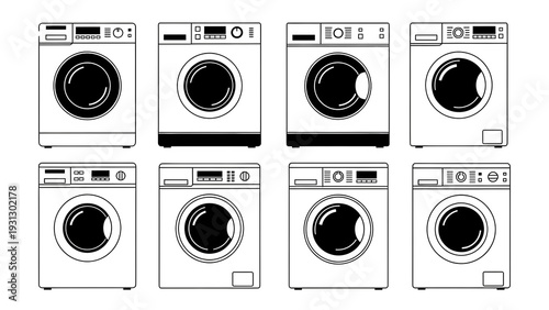 washing machine, laundry, appliance, modern, sleek, design, household, cleaning, technology, innovation, domestic, interior, decor, style, variety, collection, machine, electronic, functionality, efficiency, comfort, home, washing, clothes, routine, chore, organisation, minimalistic, aesthetic, black-and-white, line art, illustration