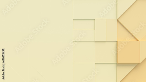 Collection of Orange and Yellow 3D Shapes form a wall. Tech background with copy-space.