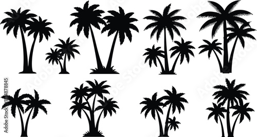 Collection of palm trees silhouettes in various shapes and sizes for tropical designs and illustrations