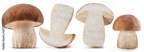 Collection of porcini mushrooms on white background. File contains clipping paths.