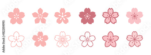 Collection of sakura blossom illustrations in various pink shades