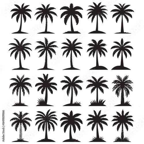 Collection of Silhouetted Palm Trees on a White Background, Vector Illustration