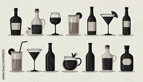 alcohol, drink, beverage, wine, cocktail, martini, champaign, beer, liqueur, bar, party, eatery, eatery, glasses, bottle, cup, wine glass, set, icon, artwork, symbol, silhouette, design, illustration, collection, graphic, spirit, pub, tavern, wine bottle, cocktail glass, stemware, glassware, festive, celebration, nightlife, happy, hours, drinking, toast, cheer, social, gathering, refreshment, liquid