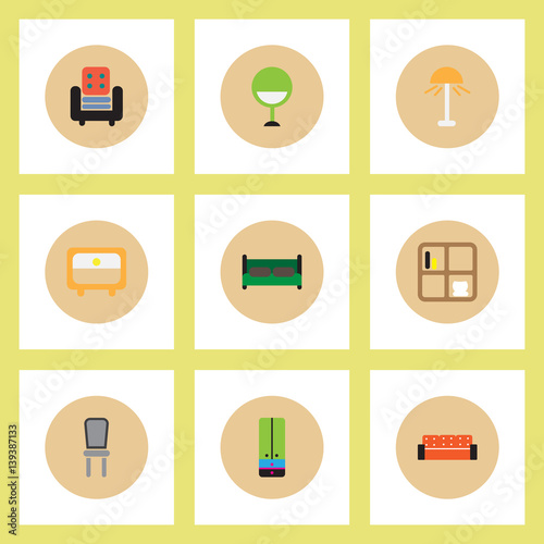 Collection of stylish vector icons in colorful circles Home furniture