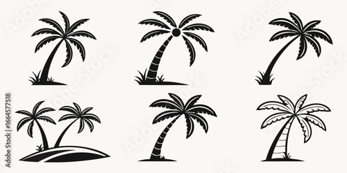 Collection of Stylized Black Palm Tree Silhouettes.