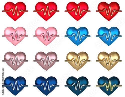 nubes, beat, rythm, pulse, red, pink, blue, gold, shiny, glossy, three-dimensional, medicals, health, symbol, shape, love, emotion, feeling, care, awareness, life, vitality, strength, abstract, digital, design, graphic, isolated, white, background, array, group, series, set, texture, smooth, surface, rendered, vector, illustration, artistic, elegant, stylish, modern, delicate, complex, lively, energetic, positive