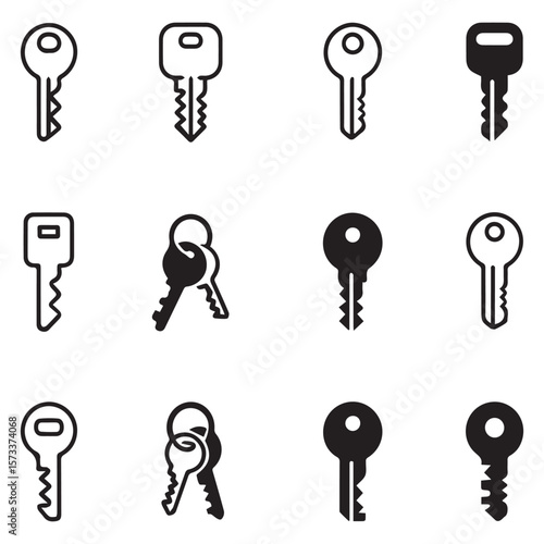 key, icon, set, collection, symbol, design, graphic, illustration, security, access, unlock, lock, door, home, house, car, transportation, vintage, modern, simple, outline, silhouette, black-and-white, isolated, white background, vector, element, object, tool, entry, open, secret, password