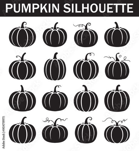Collection of various black silhouette pumpkin icons with different shapes and styles for Halloween and autumn-themed designs.