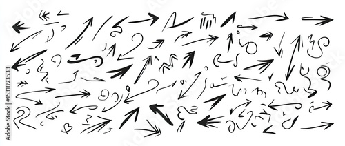 arrow, direction, pointing, hand-drawn, vector, graphic, design, illustration, style, vignetting, doodle, symbol, design element, shape, line, black, white, set, collection, unique, various, multiple, diverse, graphic design, symbolism, guide, navigation, instruction, movement, guidance, path, route, dynamic, abstract, element, decorative, pattern