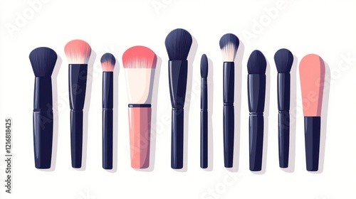 brush, make-up, cosmetic, beauty, tool, kit, set, collection, powder, reddening, foundation, eyeshadow, eyeliner, contour, highlight, angled, flat, fluffy, dome, tapered, pointed, soft, synthetic, handle, bristle, professional, artist, application, face, eye, cheek, lip, elegance, style, accessory, item, equipment, product, design, vector, illustration, graphic
