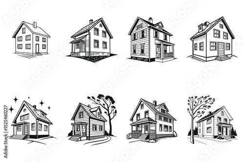 Collection of Vintage-Style House Illustrations
