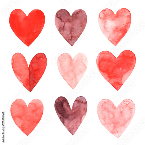 Collection of watercolor drawings heart isolated on white background. Symbol of love. Element for design Valentine's Day. Mothers Day. International Women's Day. Wedding.