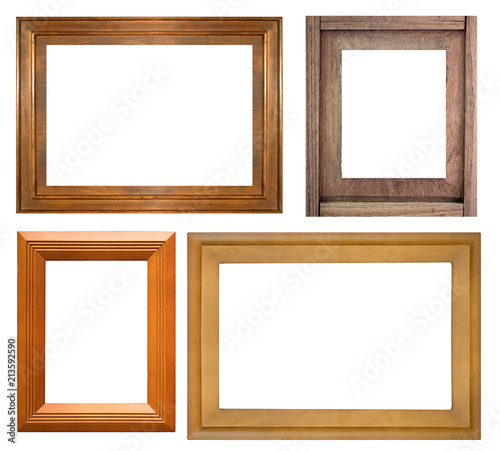 collection of wood picture frame isolated on white background.