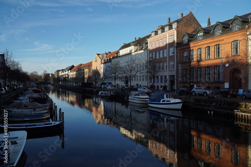 coloгrful buildings along the canal with boats in Copenhagen Denmark