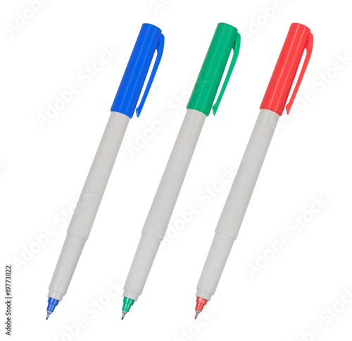 marker, pen, isolated on white, isolated, red, blue, white, green, colourful, colouring, equipment, instrument, write, supply, white background, in a row, cut-out, closeup, office