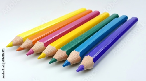 Colored Pencils Arranged in Rainbow Order on White Background.