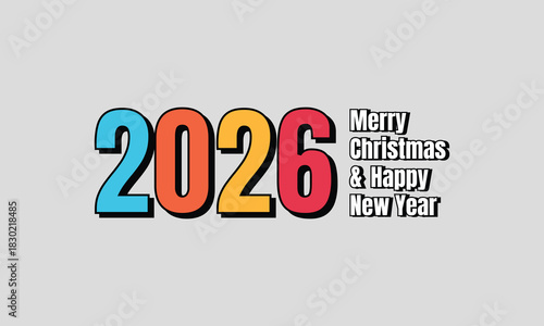 Colorful 2026 text design for Merry Christmas and Happy New Year vibrant greeting card. Vibrant 2026 number design for modern holiday celebration banner and card