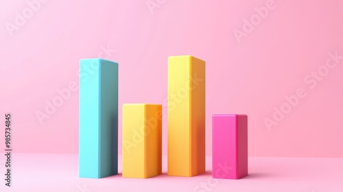 chart, bar, graph, datum, statistic, analysis, business, growth, progress, success, presentation, report, marketing, finance, economy, abstract, modern, minimal, simple, colourful, pastel, pink, blue, yellow, orange, red, background, studio, three-dimensional, rendering, illustration, design, graphic