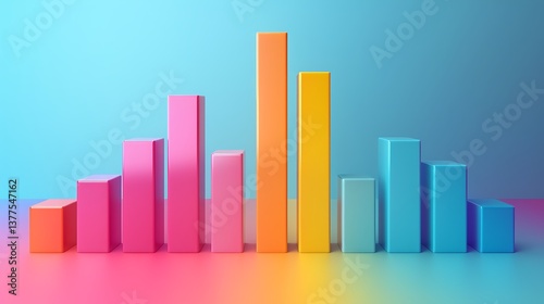 Colorful 3D Bar Graph Chart Showing Growth and Success in Business