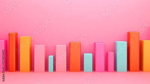 Colorful 3D Bar Graph on Pink Background Representing Data Trends and Analysis in Modern Design Style