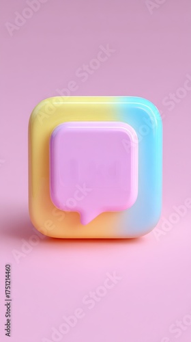 Colorful 3D Icon of a Speech Bubble on Pink Background.