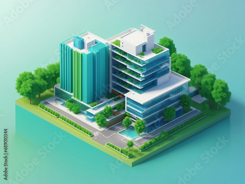 colorful 3d rendering isometric building Isolated on gradient background. home and office building