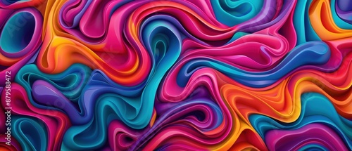 Colorful abstract art of vibrant, flowing shapes in shades of pink, blue, and orange. Dynamic and visually striking design.