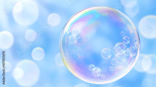 Colorful abstract bubble background with soft reflections, iridescent shimmering spheres.