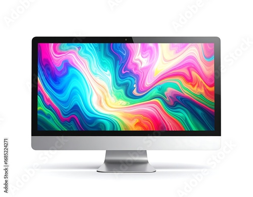 computer, desktop, monitor, screen, colourful, abstract, art, vibrant, digital, liquid, design, modern, technology, graphic, display, image, smooth, wave, paint, style, three-dimensional, rendering