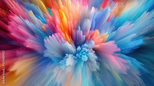 Colorful Abstract Explosion Background Design Illustration Art Style with vibrant colors and streaks of paint patterns creating a visual energy display.Whimsical illustration that is creatively
