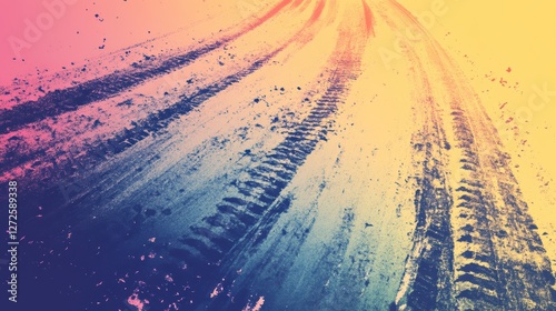 Colorful Abstract Representation of Tire Tracks on a Summer Road with Artistic Effects and Designs