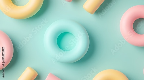 Colorful Abstract Shapes in Pastel Tones on a Soft Blue Background for Creative Design Projects
