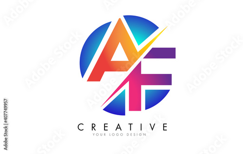 Colorful AF A F Letter Logo Design with a Creative Cut and Gradient Blue Rounded Background.