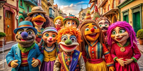 puppet, colourful, playful, character, street, vibrant, fun, imaginative, animation, creativity, friendship, entertainment, whimsical, joyful, storytelling, diversity, community, culture, fantasy, art, design, happiness, play, exploration, learning, adventure, childhood, expression, engagement, laughter, innocence, humor, playtime, education, interactive, cheerful, character, imagination, performance, street art, puppet show