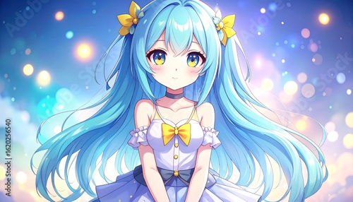 anime, girl, hair, blue, colourful, fantasy, character, art, design, graphic, dreamy, beauty, long, mood, costume, culture, creative, portrait, theme, frame, portraiture, fashion, story, cartoon, feature, cosplay, set, vibrant, render, female, manga, youthful, conceptual, artwork, pattern, expression, masterpiece, coiffure, fairy tale, journey, aesthetic, friends, fictitious, charming, visual, whimsical