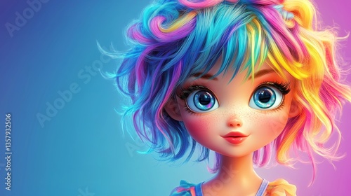 Colorful anime-style doll with exaggerated features and pastel hues