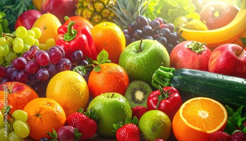 fruit, vegetable, food, healthy, nourishment, organic, diet, fresh, apple, orange, grape, strawberry, banana, pineapple, pepper, kiwi, lime, produce, green, red, yellow, colourful, assortment, raw, vegan, vegetarian, lifestyle, eating, market, garden, natural, image, closeup, macro, texture, background, delicious, ripe, vitamin, antioxidant, wellness, summer, vibrant, juicy, sweet, plant, agriculture