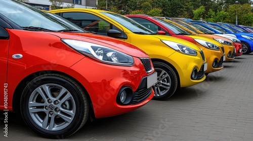 car, colourful, red, yellow, blue, green, vehicle, transportation, parked, urban, asphalt, shiny, modern, design, front, angle, auto, footed, profile, close, scene, light, nature, bright, line, pattern, arrangement, group
