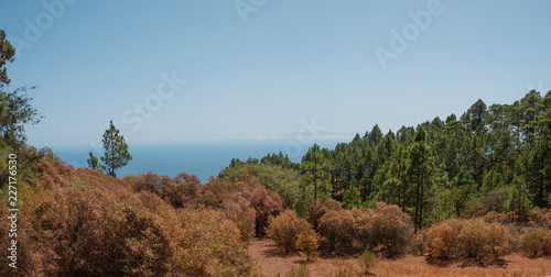 blue skies, landscape, forest, sky, beautiful, copy space, forestry, adventure, autumn, background, colourful, conifer, coniferous, environment, fall, fir, green, ground, hiking, horizon, huge, inside, leisure, natural, nature, orange, ocean, panorama, park, pine, pine tree, scenery, shadow, spain, summer, sunny, tenerife, travel, tree, tree, trunk, view, wide, timberland, wood