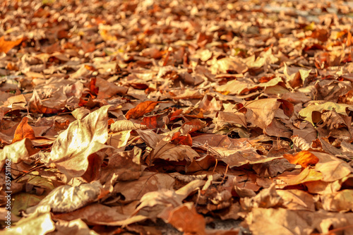 Colorful background of fallen autumn leaves , Viseu , portugal