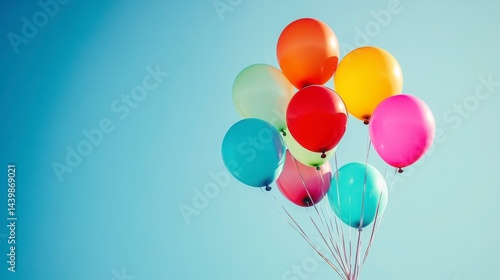 Colorful Balloons Against a Bright Blue Sky for Celebratory Events