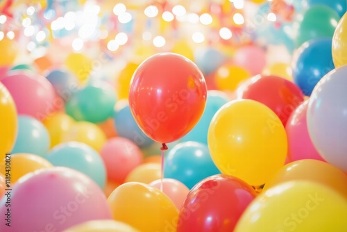 Colorful balloons and toys creating a vibrant atmosphere in a cheerful child playroom filled with joy and laughter. Generative AI