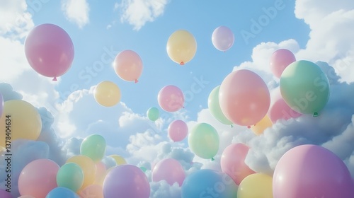 Colorful Balloons Floating in a Clear Sky for a Joyful and Playful Vibe