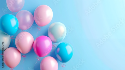 Colorful Balloons on light Blue Background, Birthday Card, Party Invitation Card