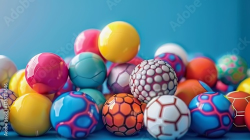 ball, sphere, toy, colours, blue, pile, round, playful, fun, game, children, bright, studio, shot, closeup, background, surface, pattern, design, texture, plastic, rubber, glossy, smooth, light, shadow, vibrant, cheerful, colourful, multi, assorted, collection, group, heap, stack, assortment, variety, decoration, object, element, nobody, abstract, art, illustration, render