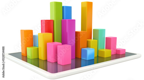 Colorful Bar Graph Displayed on Tablet with Modern Design and Vibrant Blocks for Data Visualization