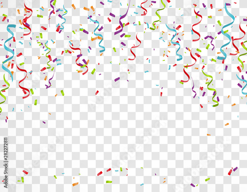 Colorful Bright Confetti Isolated on Transparent Background. Holiday Decorative Falling Shiny Confetti.