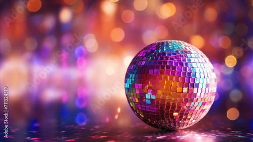 Colorful bright disco ball, unreal trippy rave party