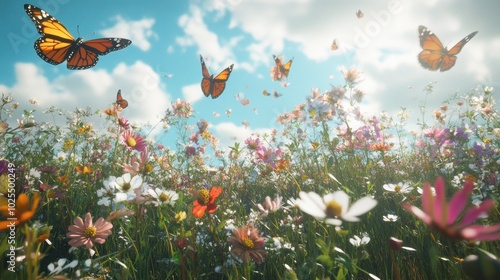 Colorful Butterflies in a Vibrant Flower Field