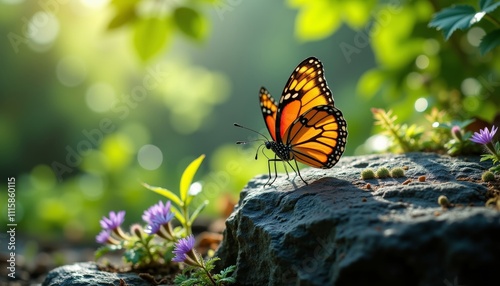butterfly, nature, rock, flora, wildlife, insect, garden, orange, green, fauna, blossom, blooming, close, up, colourful, vegetation, beauty, sunny, vibrant, relaxation, macro, environment, peaceful, summer, calmness, soft, natural, wing, delicate, scenic, ecosystem, sunlight, growth, biodiversity, picturesque, stunning, elegant, leisure, habitat, refreshing, organic, pollinator, tranquil, high-coloured